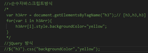 | 스타일 관련 | .style.스타일속성 = "변형할값"; | .css("스타일속성","변경할값"); |