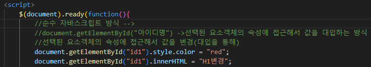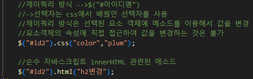 | 요소 선택 방법 | document.getElementById("아이디명") | $("#아이디명") |