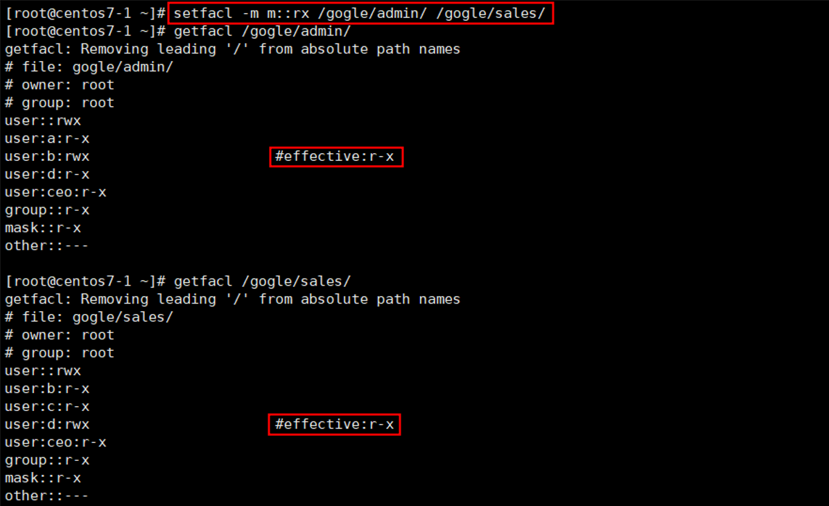 7. mask 값을 rx로 변경 후 확인 (팀장들에게서 w권한을 제거하겠다는 의미)