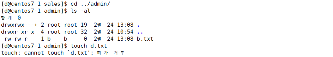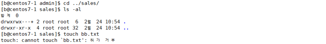 5. 팀장은 본인 부서 디렉토리는 모든 권한을, 다른 부서 디렉토리는 읽기 권한을 가짐