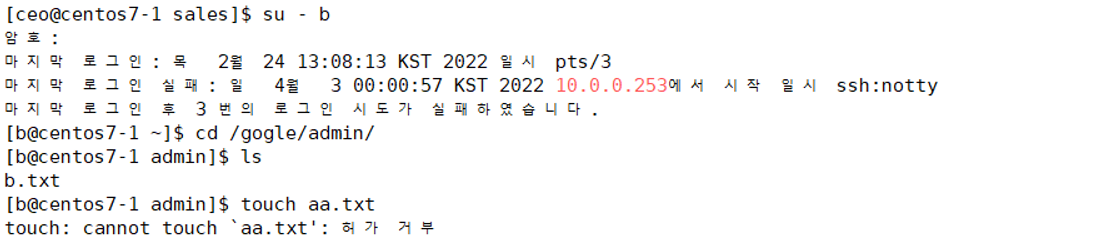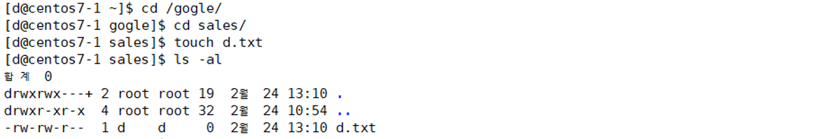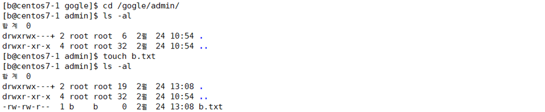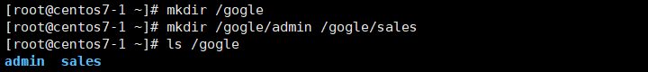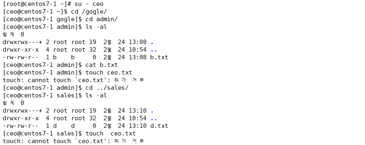 1. 최상위 디렉토리에 gogle 디렉토리 생성 후 하위 디렉토리 admin, sales 생성