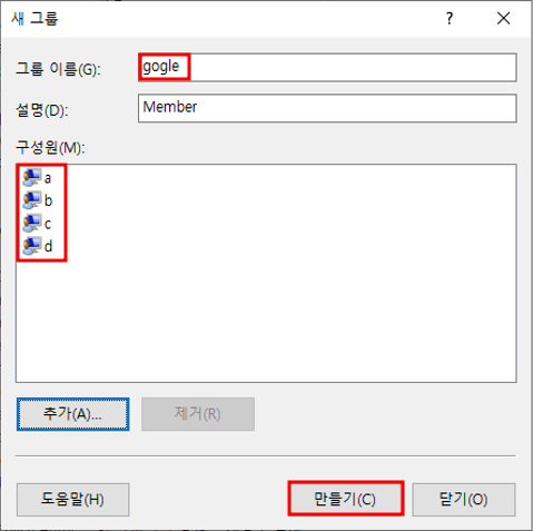 1. a,b,c,d 계정 생성