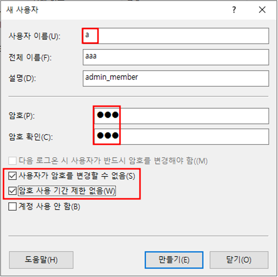 2. 사용자에서 우클릭으로 새 사용자 생성