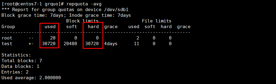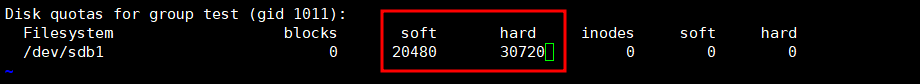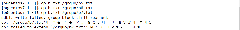 7. [edquota -g] 명령어를 사용해 quota의 그룹 설정파일을 편집합니다