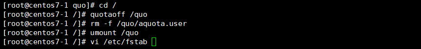 해당 디렉토리에서 나오기 > quotaoff > quota database 삭제 > 마운트해제 > /etc/fstab 수정