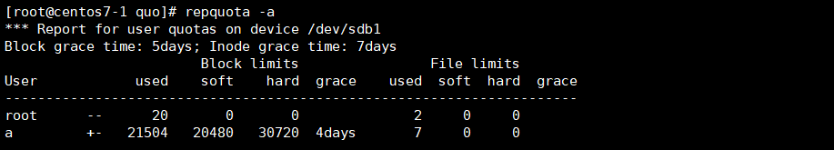 9. [edquota -t] 명령어로 quota의 유예기간을 설정해줍니다