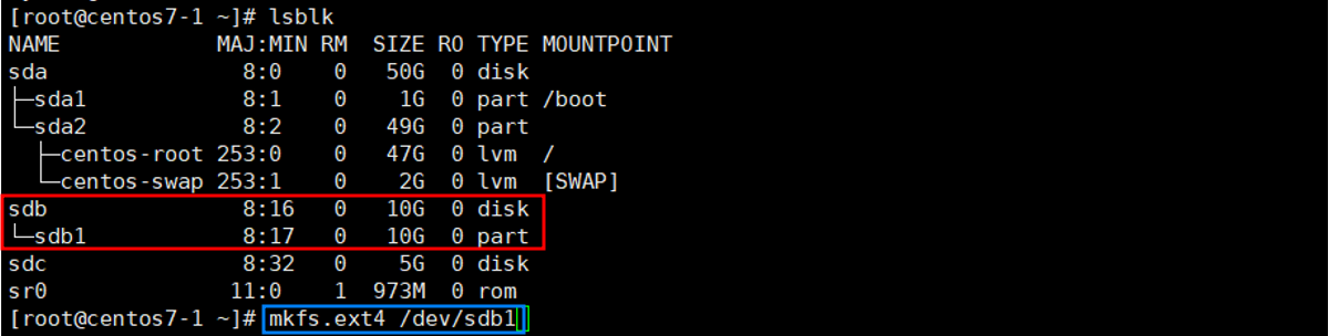 4. 파티션 확인 후 ext4 파일시스템을 생성합니다