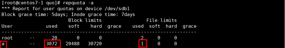 10. [quotaon] 명령어로 quota 실행 후 [repquota] 명령어로 확인해줍니다