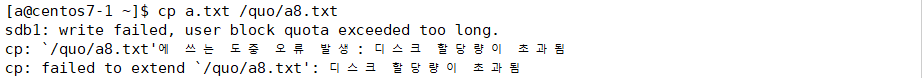 8. [edquota -u] 명령어로 quota의 사용자 설정파일을 편집해줍니다.