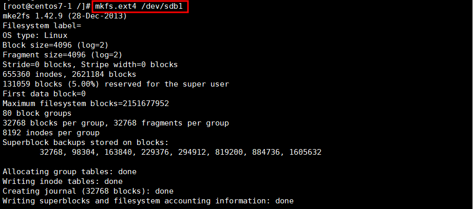2. sdb 디스크를 파티셔닝 후 ext4 파일시스템으로 생성합니다
