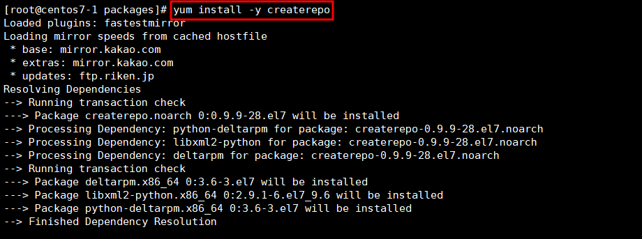 1. createrepo 디렉토리를 생성 후 yum 명령어로 다운로드 했던 패키지를 옮겨줍니다