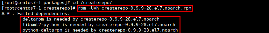2. [rpm -Uvh] 명령어를 사용해 createrepo 패키지를 설치합니다