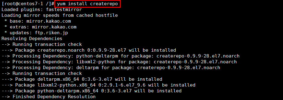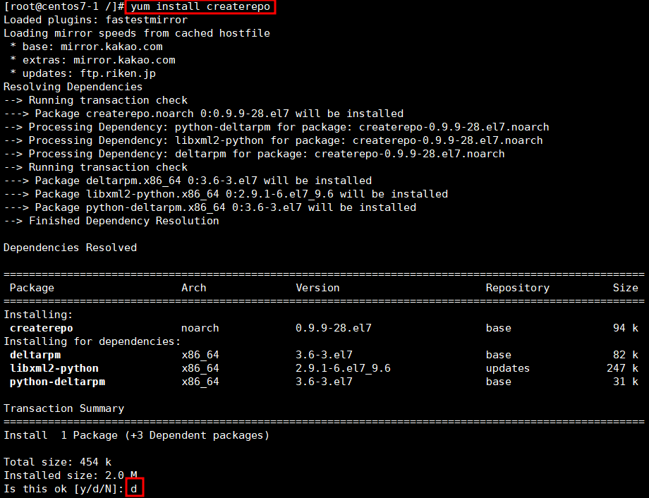 3. [yum install] 명령어로 createrepo 패키지를 다운받습니다