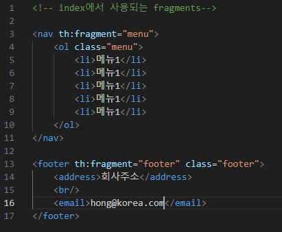 2. index.html 페이지 하단에 footer를 fragment를 사용하여 replace 하시오