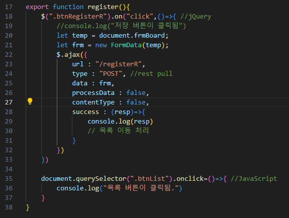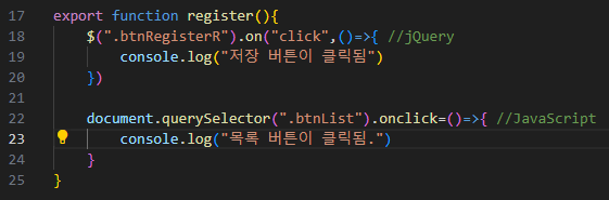 *위는 제이쿼리 아래는 자바스크립트로 작성하는 방법