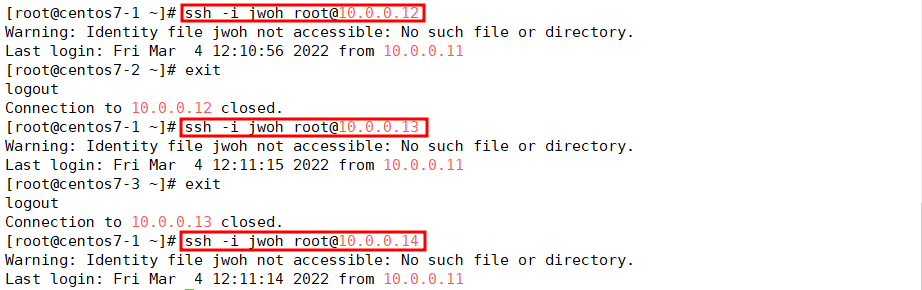 4. CentOS7-1이 다른 모든 VM으로 접속하기 위해서는 개인키 필요