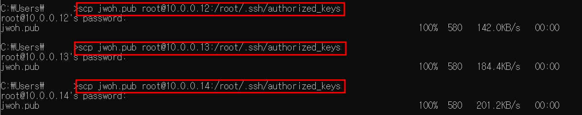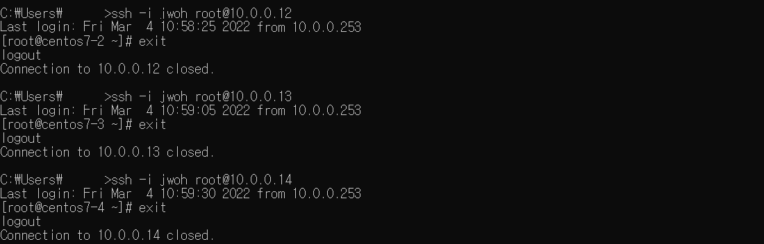 1. 모든 CentOS에 ssh key를 이용한 접속이 가능하게 설정합니다.