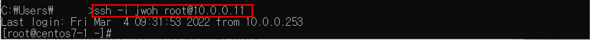 3. 첫번째 CentOS7-1에서 다른 VM으로 ssh key 접속 가능하게 설정합니다.