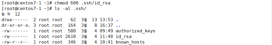 1. 모든 CentOS에 .ssh 디렉토리 확인 (없다면 생성 권한은 600)