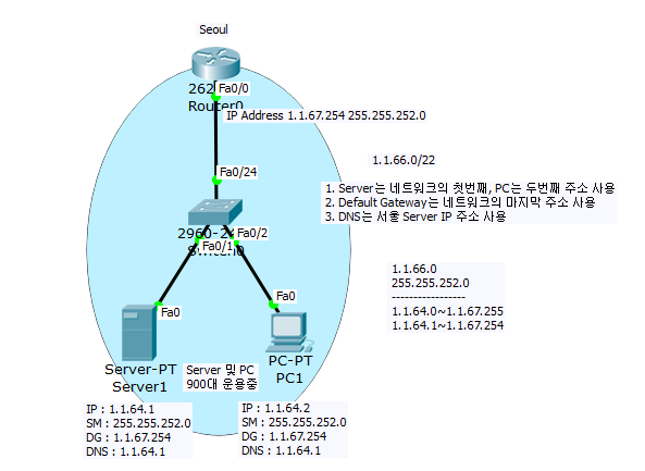 2. Server 1의 IP Address는 네트워크의 첫번째 IP 부여