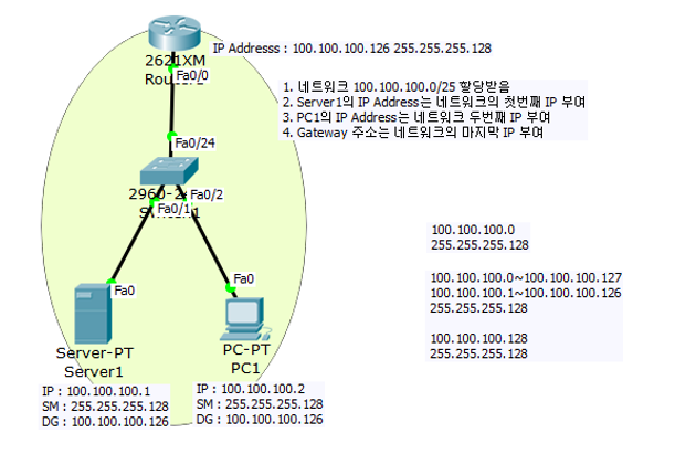 2. Server는 네트워크의 첫번째, PC는 두번째 주소 사용