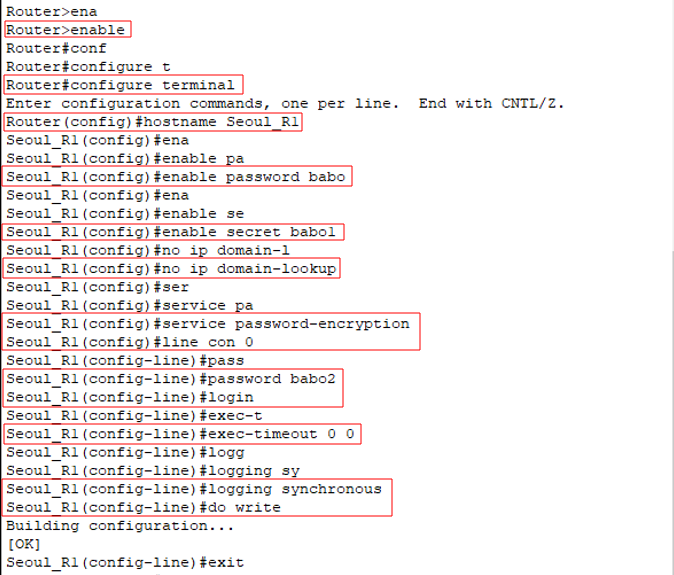 7. [show ip route] 명령어를 사용해 서울 Router의 라우팅 테이블 확인