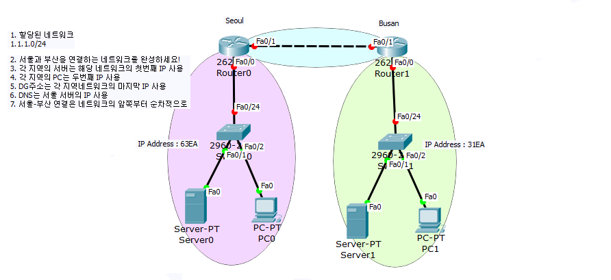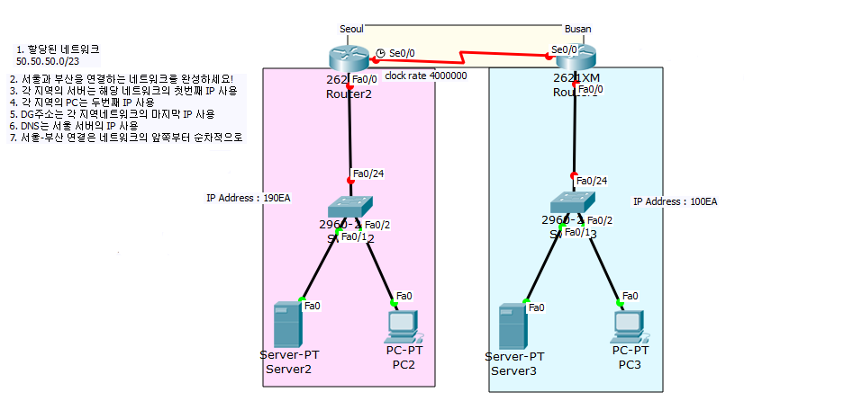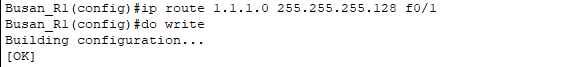 * 서울 Router에게 부산 서버와 부산 PC로 가는 데이터를 부산 Router에게 보내는 정보만 입력하면
