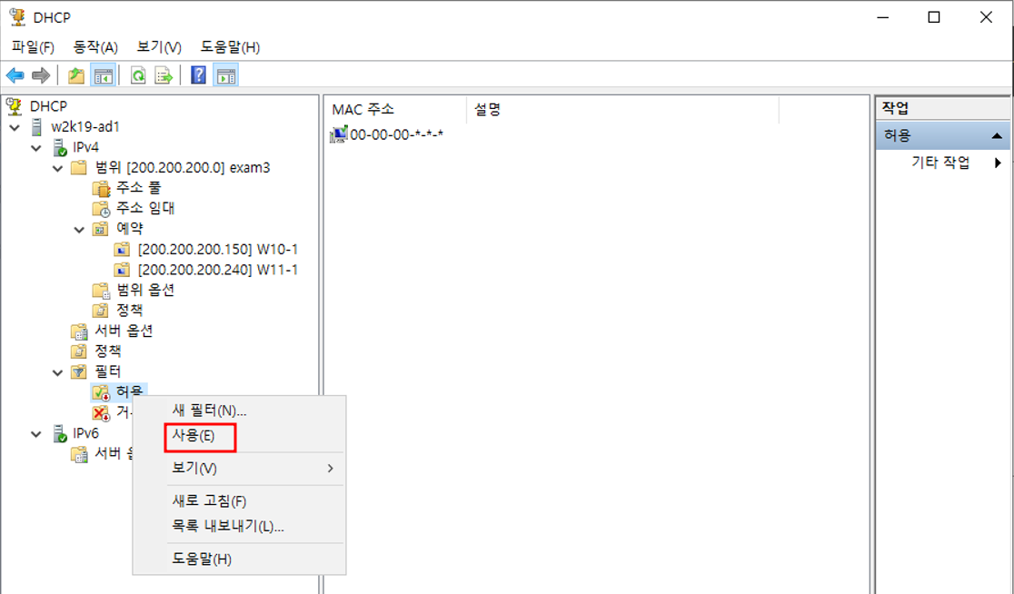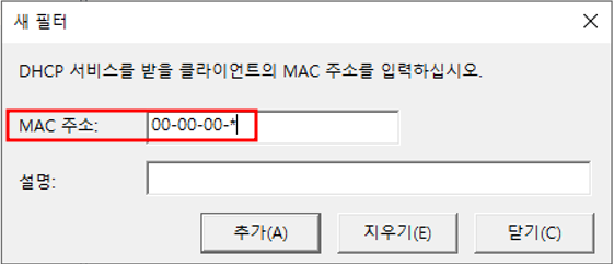 - 허용된 MAC Address만 IP Address를 할당하는 기능