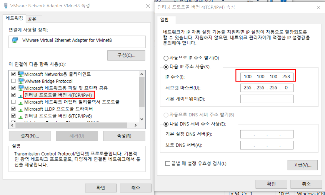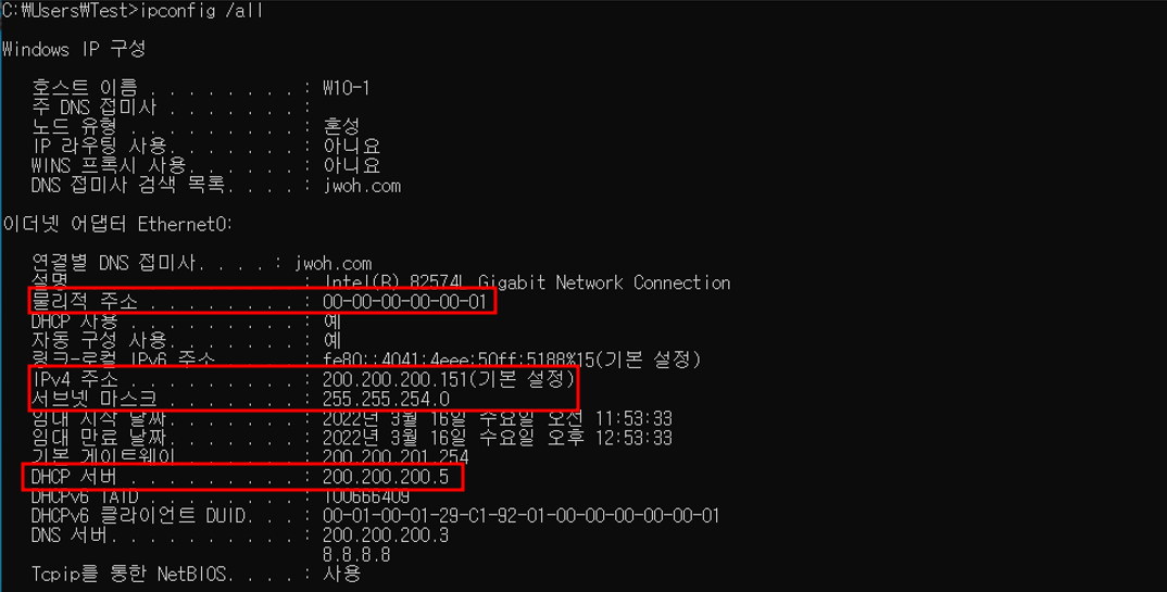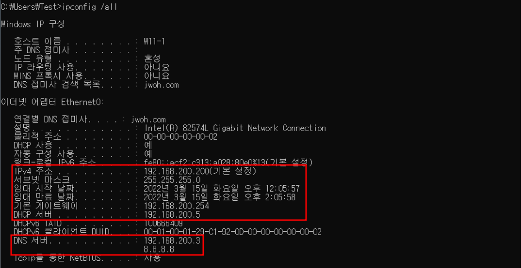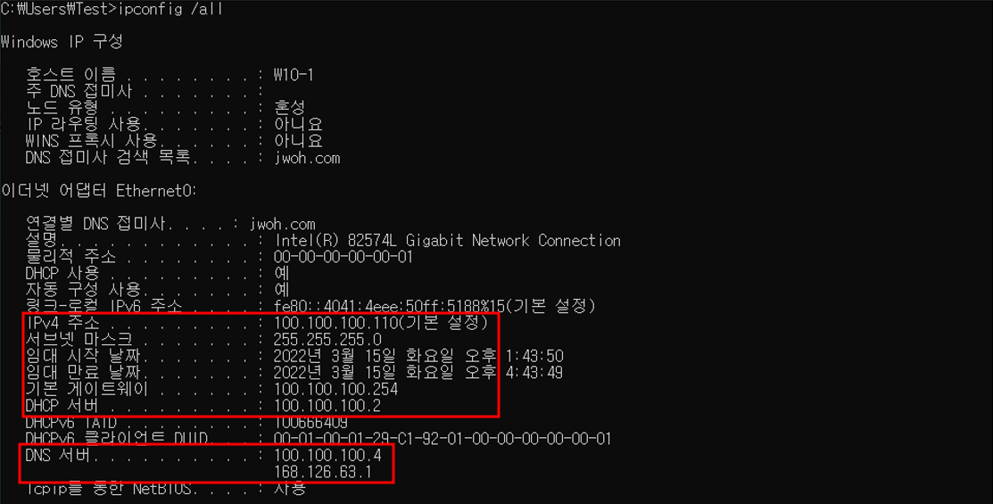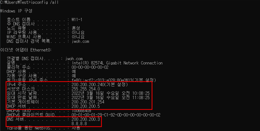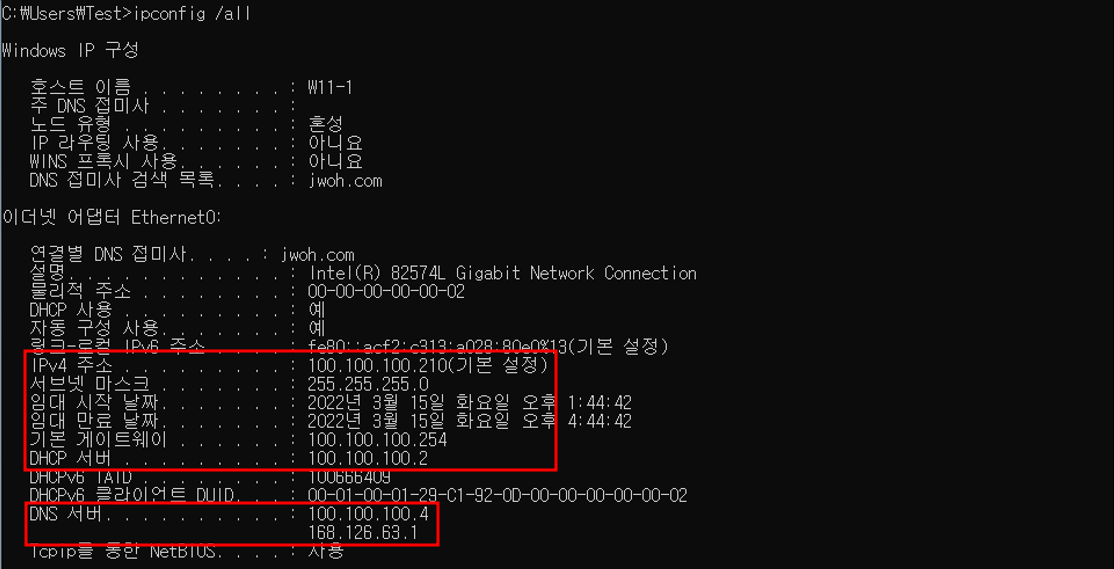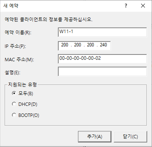 7. W10-1은 항상 백번째 IP를 W11-1은 이백번째 IP를 우선적으로 사용합니다.