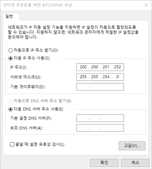 사용가능한 네트워크 200.200.200.1~200.200.201.254