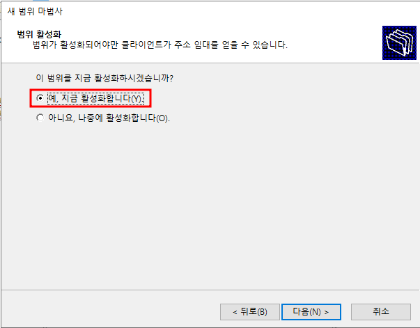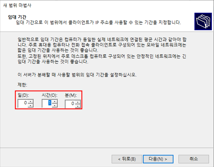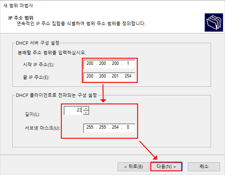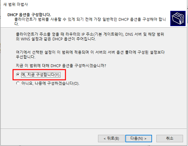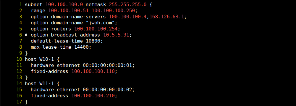 * DHCP 서버가 Linux와 Winodws에 동시에 있을 때는 Offer Message 지연시간을 설정하여 Linux의 DHCP 서버에서