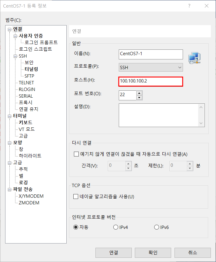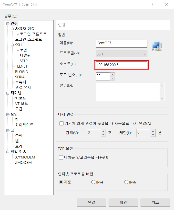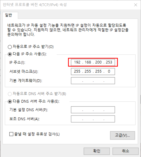 3. 실제 PC IP 변경 (xshell 접속을 위해)
