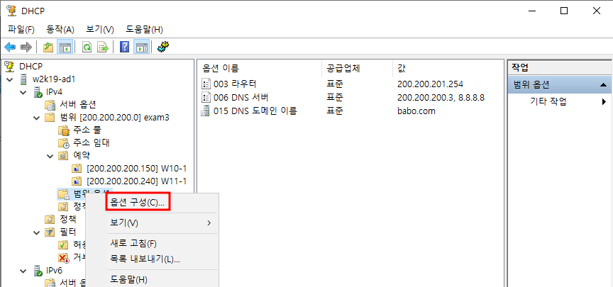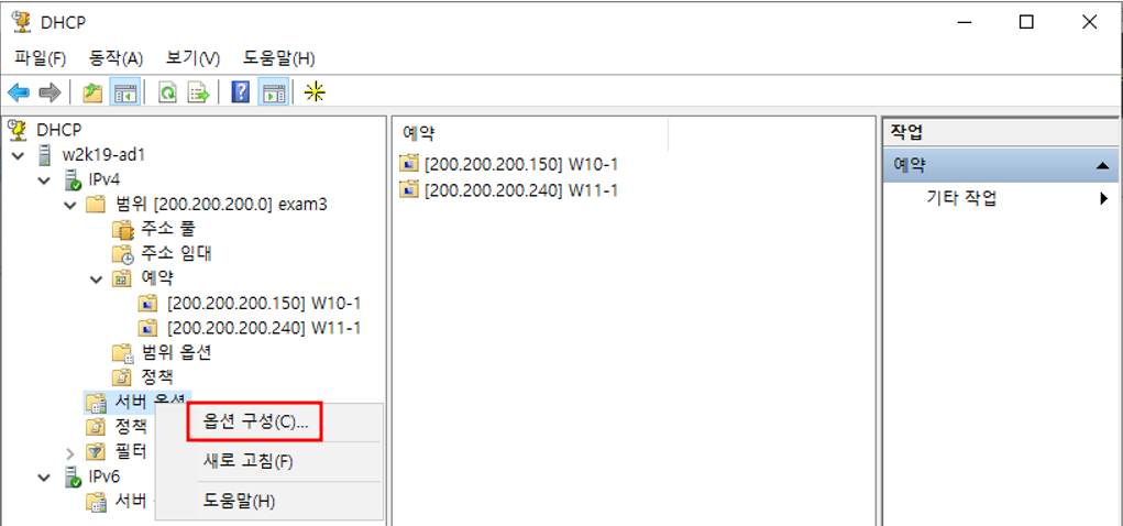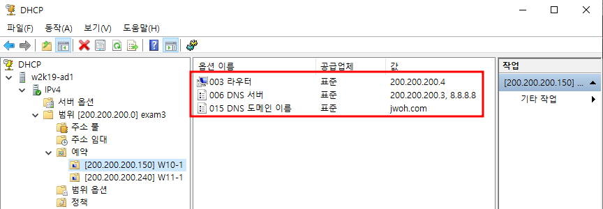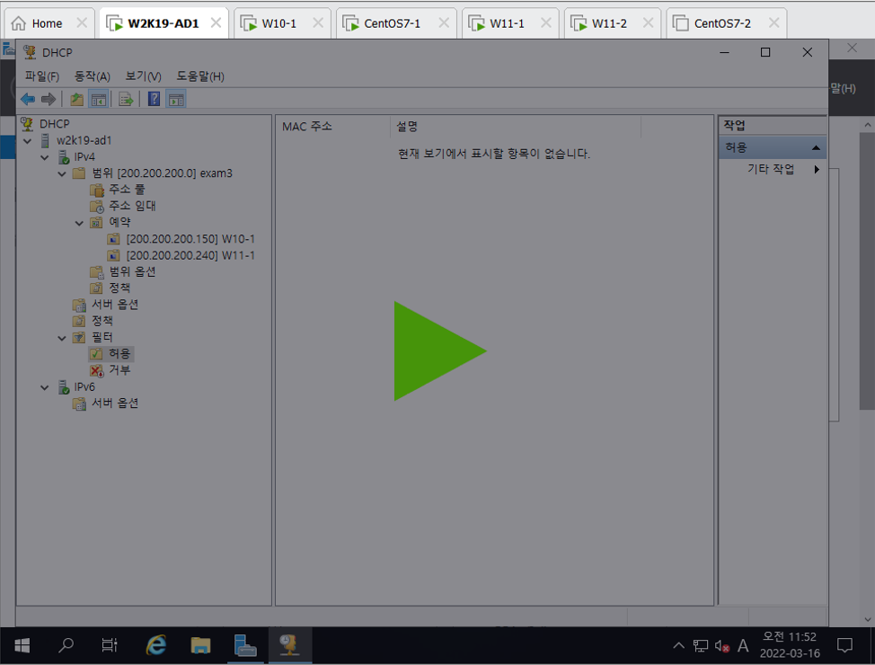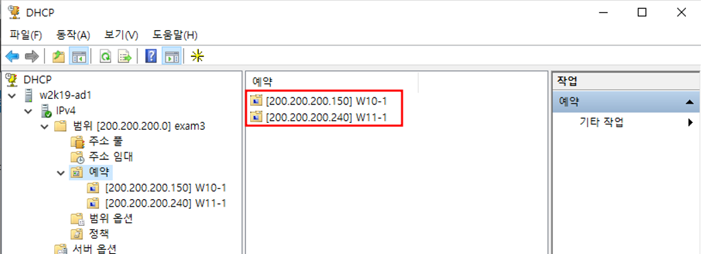 3. DHCP서버는 windows 3번째 서버, Linux 5번째 서버입니다.