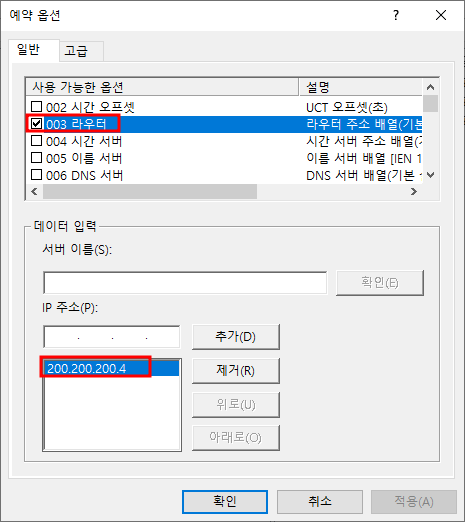 서버 옵션 > 범위 옵션 > 예약 옵션 순으로 적용