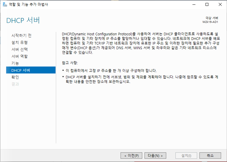 - DHCP Server는 반드시 서비스 하는 Network 대역 중 하나의 IP를 고정IP로 가져야한다.