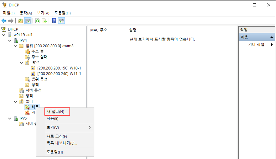 [28] DHCP Binding Address | 범위 옵션 | Filtering | Windows 실습 | Linux 실습 (2)