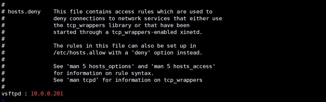 - TCP Wrapper : hosts.deny 파일에 작성된 IP는 FTP 접속 불가