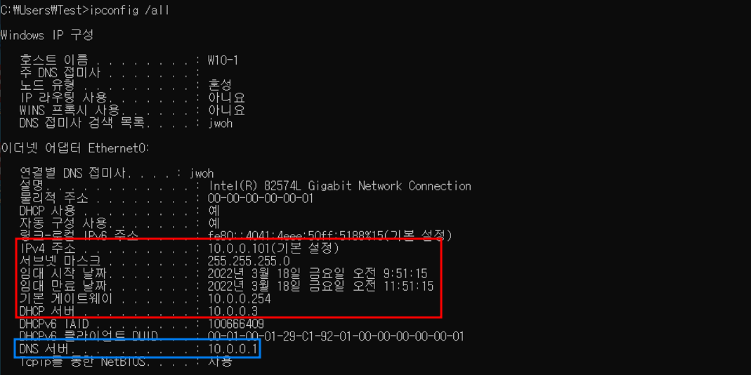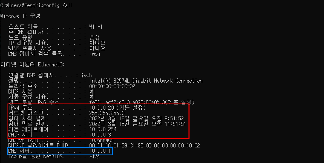 - ipconfig /all 명령어로 자세한 정보 확인