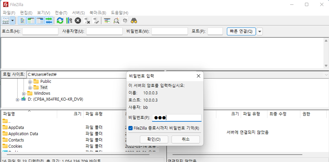 6. FileZilla에서 설정 적용 확인