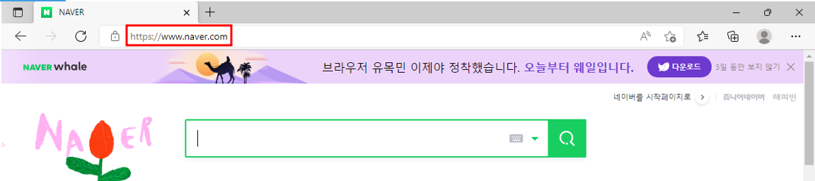 - 네이버 서버의 IP를 인터넷 창에 입력 시 네이버 창이 나옴
