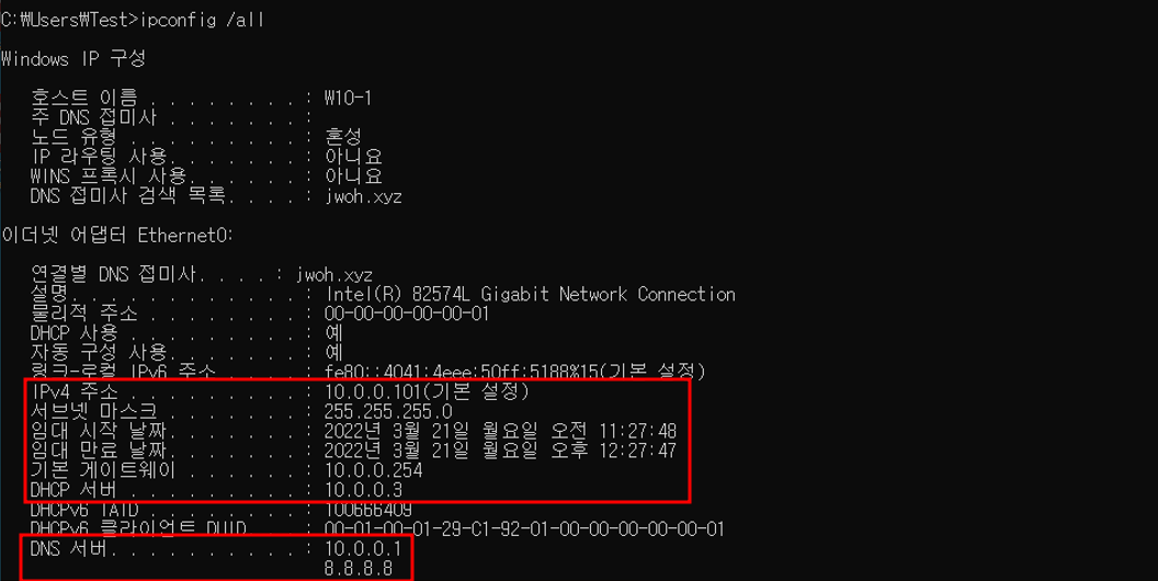 1. Windows 서버의 DHCP 중지 (W2K19-AD1)