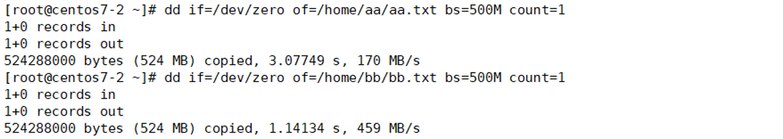 2. 사용자의 홈디렉토리에 각 500MB의 aa.txt, bb.txt를 각각 생성함