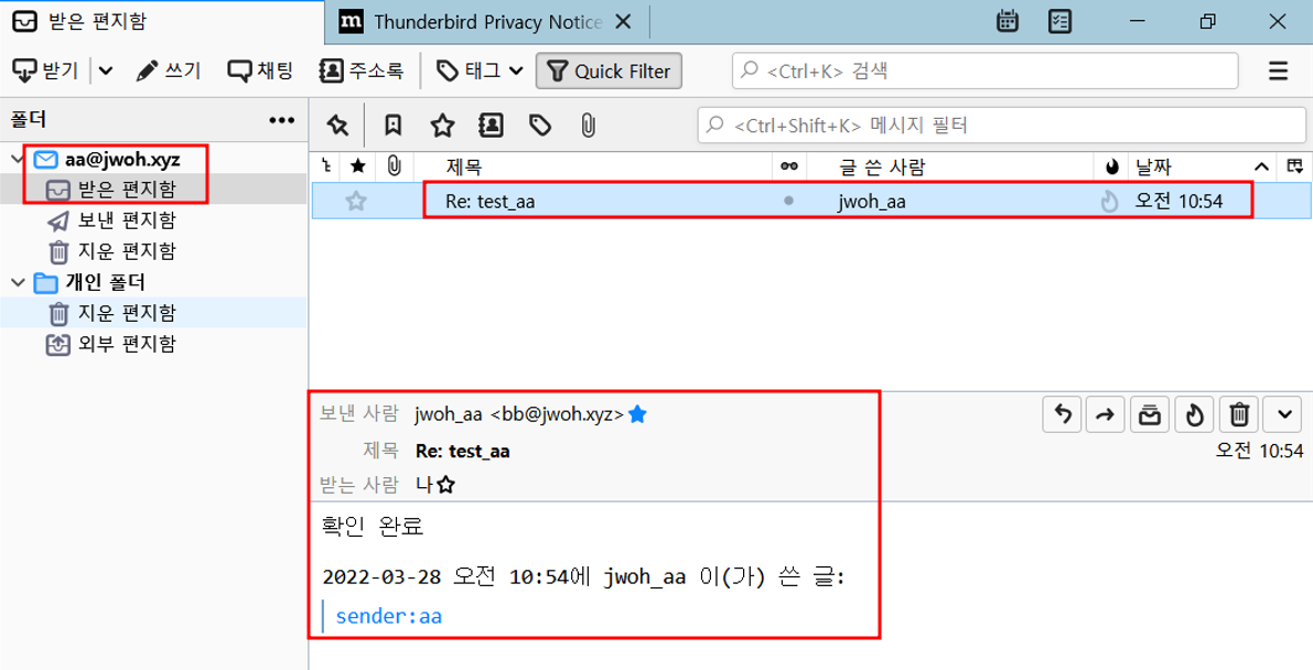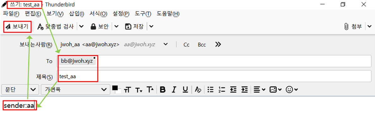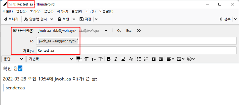 - w11-1에서 w10-1로 메일 작성 후 보내기
