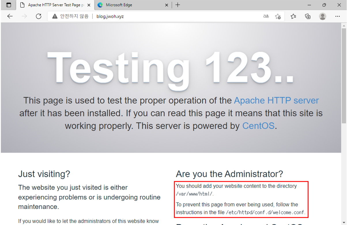 * blog의 index.html 파일을 읽지 못하면 apache에서 제공하는 시작페이지 실행이 됨