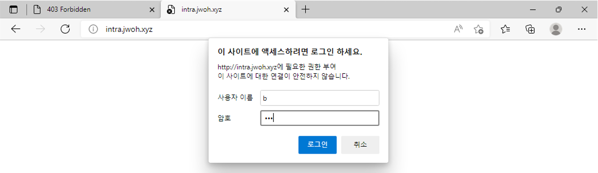 5. Intra 페이지는 a, b 사용자만 접속 가능