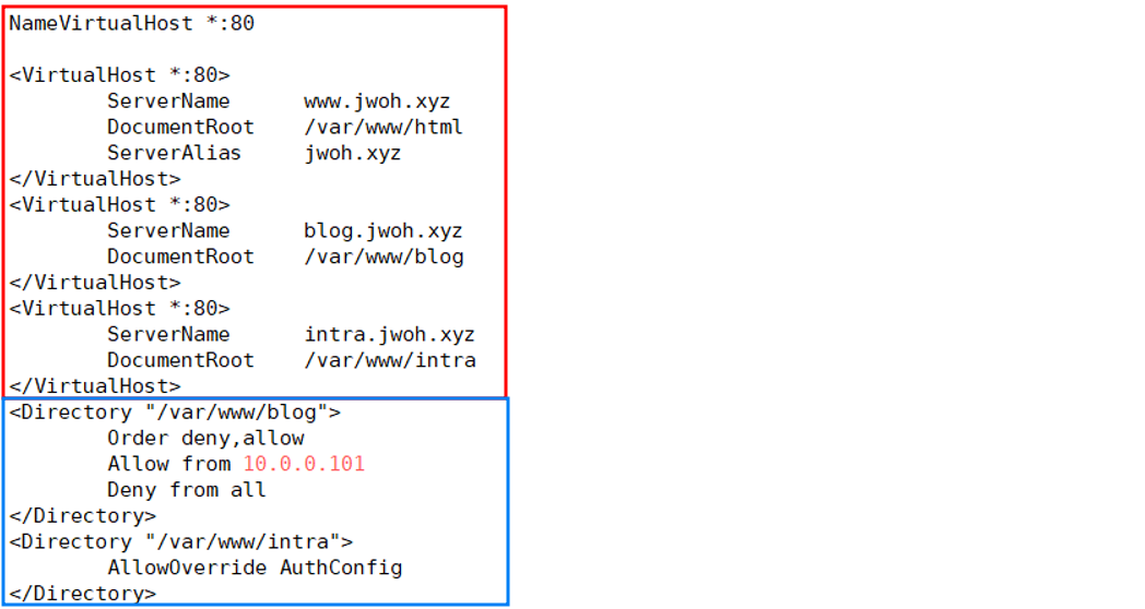 - ServerAlias : www.jwoh.xyz와 jwoh.xyz를 같은 취급
