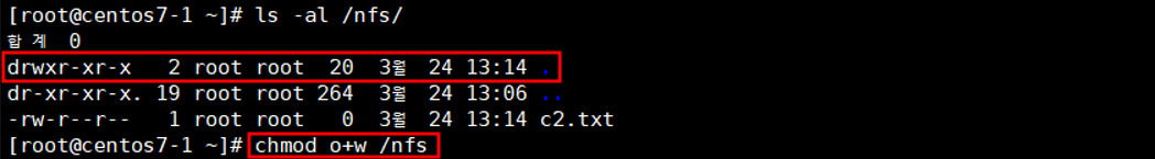 3. /nfs 디렉토리에 others 쓰기 권한 부여
