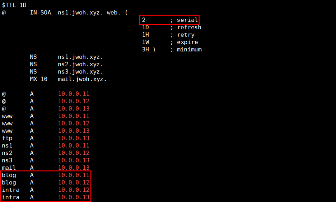 2. 주DNS 정방향 조회 영역 파일에 mail 설정
