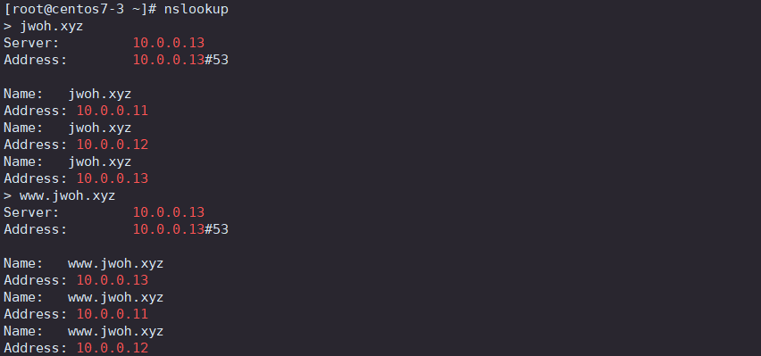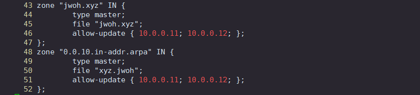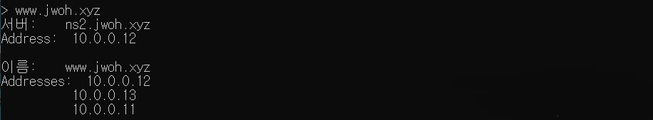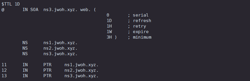 정방향 영역 파일 (jwoh.xyz), 역방향 영역 파일 (xyz.jwoh) 확인 가능