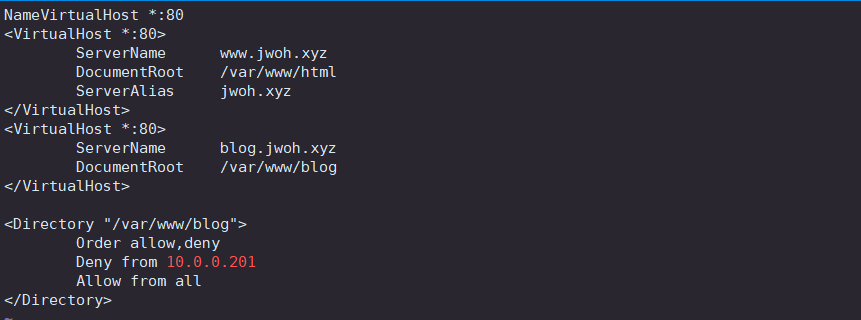 vi 편집기로 설정 파일 열기가상호스트와 접근 제한 작성